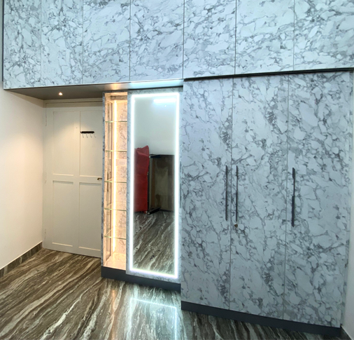 Completed in October 2022, this renovation revitalized the space with a modern TV unit, preserved furniture through smart storage, fresh paint, and elegant false ceiling designs with wallpaper. Two bedrooms received satin-finished wardrobes with loft storage, and the study table was redesigned for better functionality. Marble polishing throughout added a touch of luxury to this innovative transformation.